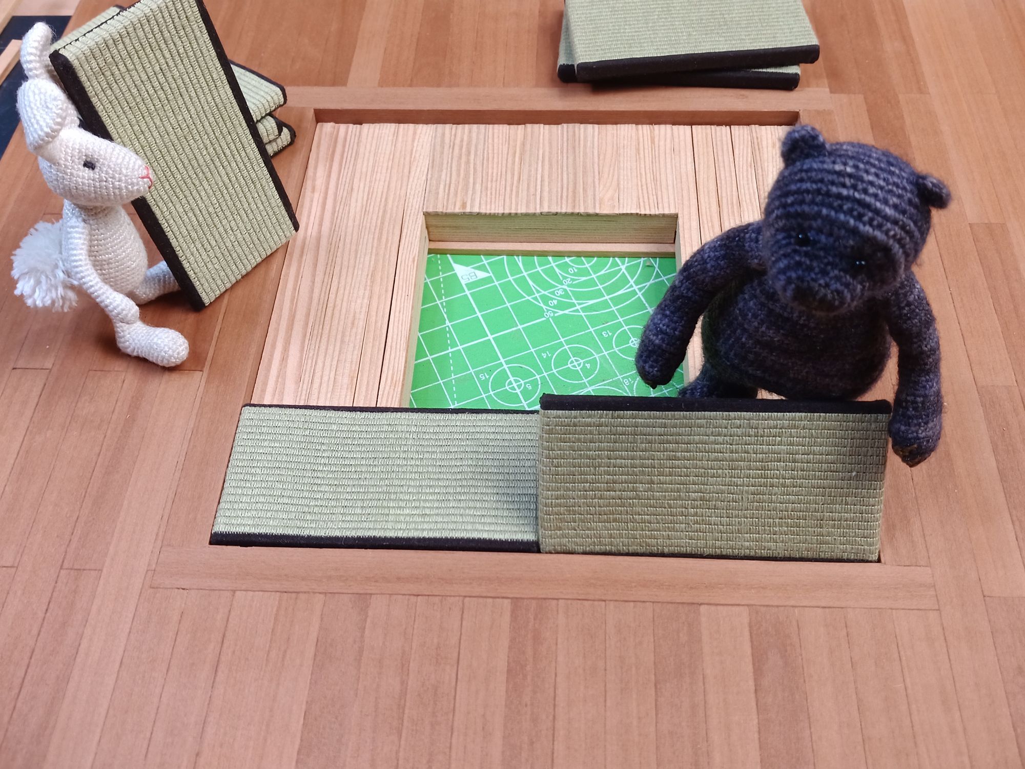 The next step took a bit of thinking, I wanted a hidden foldable table underneath the middle 2 tatami mats.